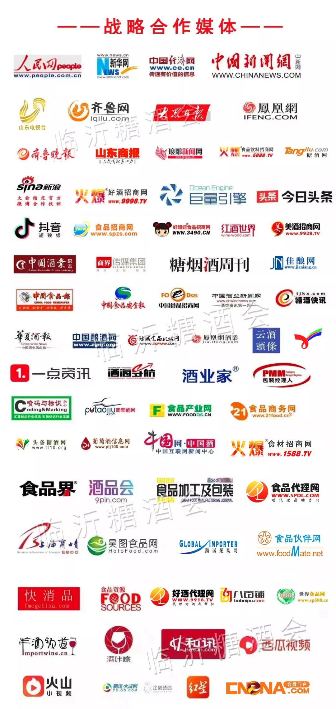 覆盖临沂市3000余辆出租车+公交车、主要路线站牌、长途汽车站、火车站等主要公共场所,微博大V、微博话题、微信公号、微信朋友圈、今日头条、百度关键词、百度信息流等主流社交媒体,另外还有人民网、新华社、中国食品报、大众日报、齐鲁晚报、临沂日报、沂蒙晚报、琅琊新闻网、山东商报、临沂广播电视台、山东广播电视台、华夏酒报、中国食品网、火爆食品饮料招商网、火爆好酒招商网、火爆调味品招商网、中国食品招商网、好酒代理网、食品代理网、食品商务网、中华名酒招商网、食安临沂网、食品伙伴网、白酒经销商学院、中国美酒招商网、葡萄酒资讯、中国糖酒招商网、中国葡萄酒网、红酒世界网、好妞妞、中国糖果网、中国调味品网、中国调料网、中国包装与食品机械网、中国食品机械网等多家媒体。主流媒体:人民网、新华社、凤凰网、大众日报、齐鲁晚报、临沂日报、沂蒙晚报、鲁南商报、山东商报、山东广播电视台、临沂广播电视台;