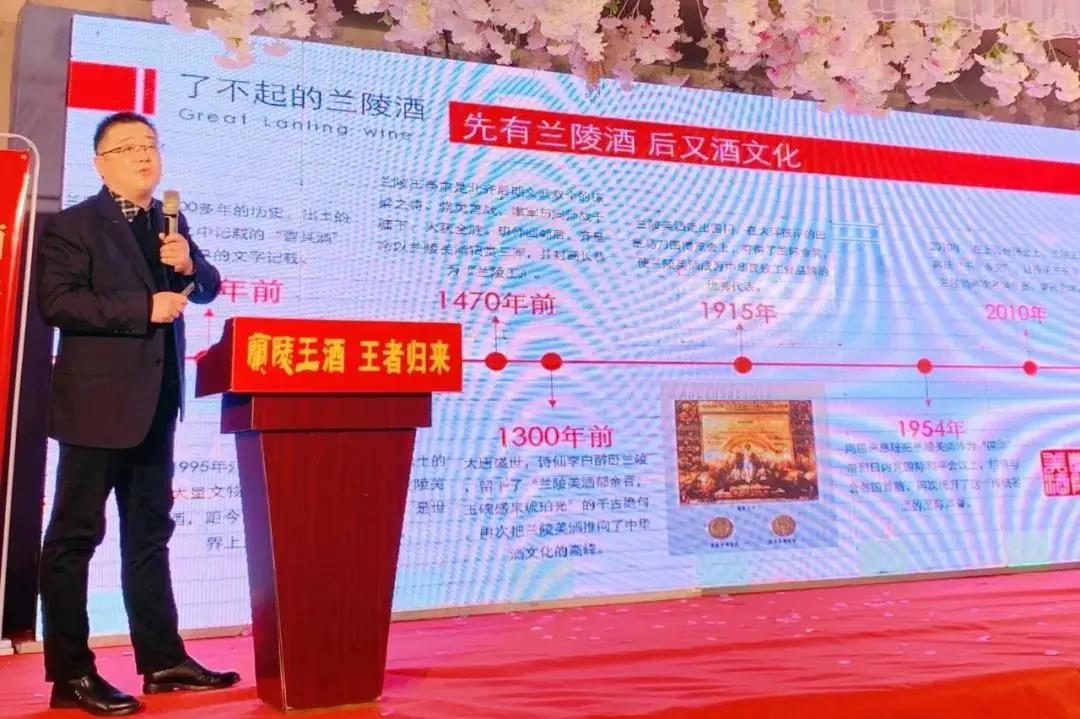 会上,兰陵美酒股份有限公司王树忠经理致欢迎词,并对兰陵品牌文化历史作了分享,对兰陵王酒从上世纪90年代到如今的五代演变历程做了回顾,对第五代兰陵王酒的特点做了详细介绍。