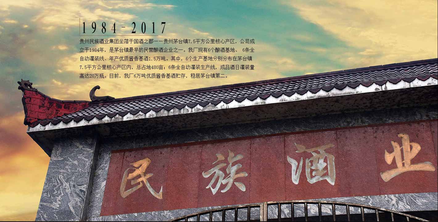 据悉,贵州省仁怀市民族酒业集团有限公司成立于1984年,是仁怀市最早成立的民营企业之一,厂址分处赤水河畔的椿树、交通、外环、底水、五马等地,与国酒茅台同享得天独厚的自然条件,共同接受赤水河的恩泽,经过多年的发展,民族酒业集团已然成为茅台镇一家具有年产20000吨酱香型白酒的生产厂家,公司主营酱香型白酒的生产、销售。年销售额达8亿,属于茅台镇规模以上企业。