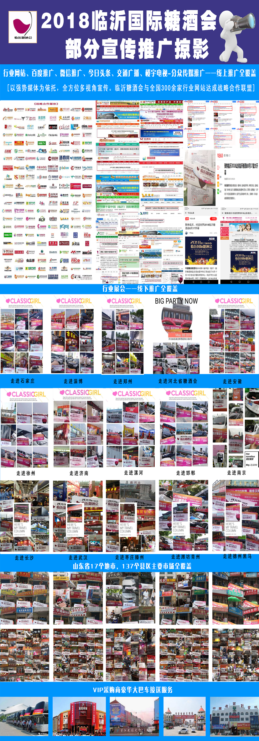 据悉,为打造超级火爆糖酒会!本届临沂国际糖酒会除了在线上:火爆食品饮料招商网、火爆好酒招商网、火爆调味品招商网、中国糖酒网、中国美酒招商网、好妞妞食品饮料招商网、世界食品网、食品商务网、红酒世界、百度推广、新浪、腾讯...等360余家行业媒体投放宣传之外;2018临沂国际糖酒会线下宣传推广继走进:“成都市、石家庄市、郑州市、淄博市、临沂市、合肥市、漯河市,南京市、济南市、长沙市、武汉市、徐州市、滕州市、潍坊青州市、潍坊寿光、德州市、菏泽、聊城、烟台...”等省市跨区域邀展宣传推广工作之外。7月18日在距离展会开幕还有近一个月时间组委会在
