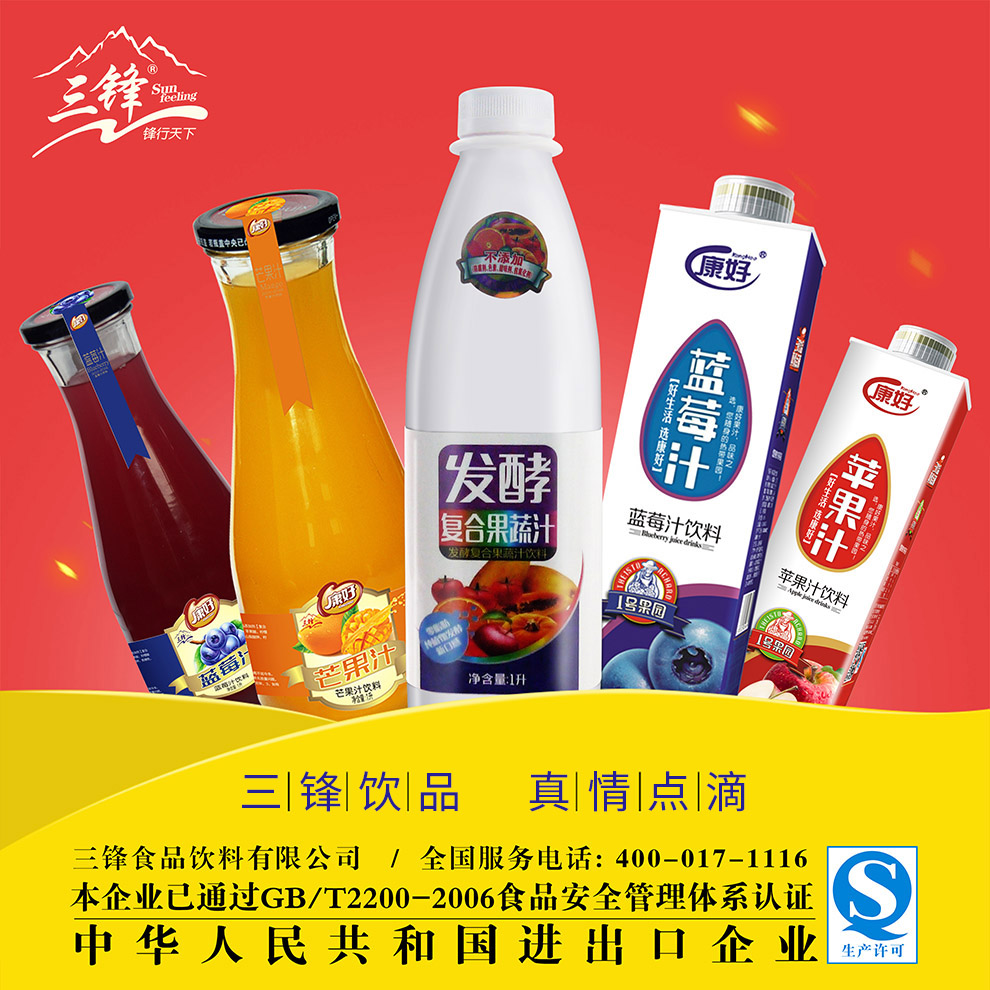 公司自1998年创建以来,三锋饮品始终以健康饮品为市场定位,以消费者需求为导向,以消费者饮食健康为最终目的,及时推出新品,以健康品质获得消费者的青睐,业界销量连年领先。