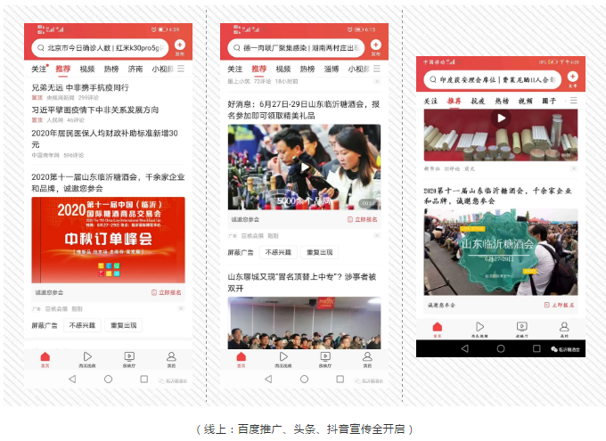本届展会专业观众福利多。专业观众精准邀约享受豪华大巴车免费接送、管食宿定向专业邀请服务凸显承办方实力及接待能力。安徽、江苏、河南、河北等省外采购团及滕州、潍坊、聊城、德州、菏泽、济宁及济南等省内采购团均实现专车接送服务。来自各地采购团热情满满,当日意向采购订单破二千万元。宣传推广方面高密度精准投放推送。进入6月份以来会展广告宣传覆盖临沂市3000辆出租车后屏、公交车广告等主要公共场所,微信公号、微信朋友圈、微信群、今日头条、百度推广、临沂交通广播等主流媒体,另外还有大众网、琅琊新闻网、海报新闻客户端、齐鲁晚报、齐鲁壹点、临沂日报、沂蒙晚报、临沂电视台、酒业报道、大众新闻中心、中国市场网、中国商务信息网、佳酿网等多家媒体争相报道。