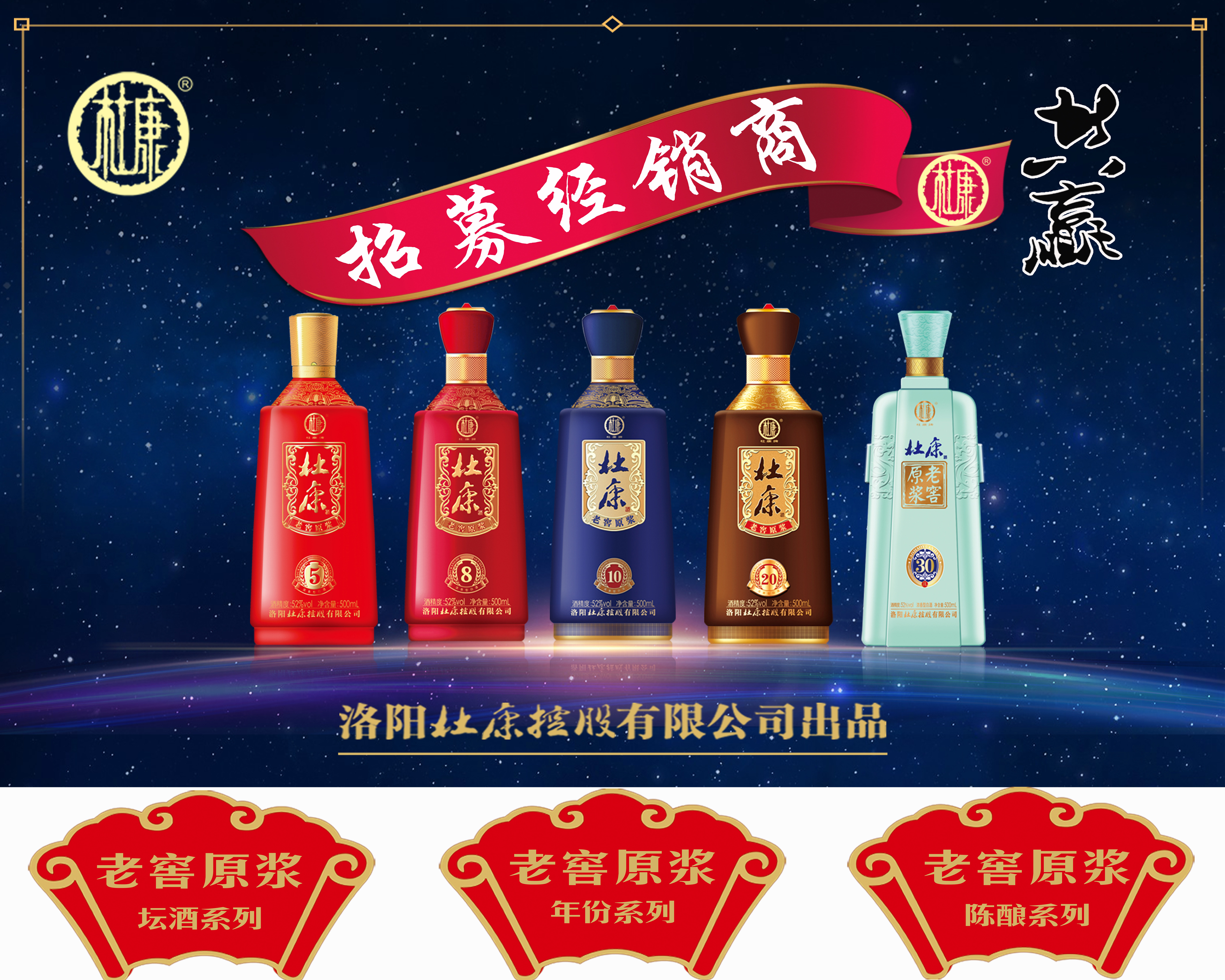 杜康酒,出于杜康酿酒遗址千年帝都洛阳城外。万年玄武岩古泉泉水,流淌着源远流长的中原文化,清冽泉水中两两双抱的鸳鸯虾,见证着杜康泉水的千古传奇。以桑泥为窖,杜康古桑窖池中亿万的微生物菌群历经岁月繁衍,酿出延绵酒香。酿酒大师严循古训,以五齐六法,匠心配制“窖香幽雅,甘润怡人”的杜康佳酿。